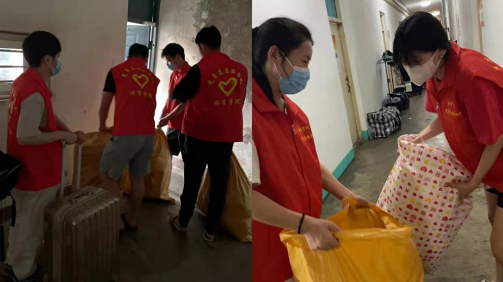 学院的毕业生党员们在紧张的毕业答辩之余,自发行动起来,为因疫情未能返校的毕业生同学整理行李。他们两人一组,与每一位同学联系,耐心细致整理打包物品。