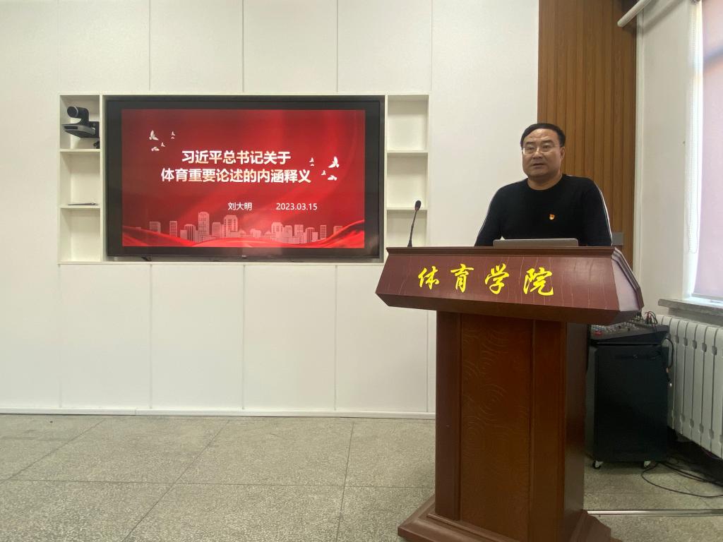 刘大明院长以习近平总书记关于体育的重要论述为题,从新时代体育健康观、强国观、改革观三个方面,结合运动训练专业建设大纲,鼓励全体学生要以更开阔的视野、更高远的目标和更宏大的格局去谋划学业、事业的发展蓝图,锐意进取,奋发图强,全力开创体育新人发展的崭新局面,努力为建设体育强国贡献青春力量。