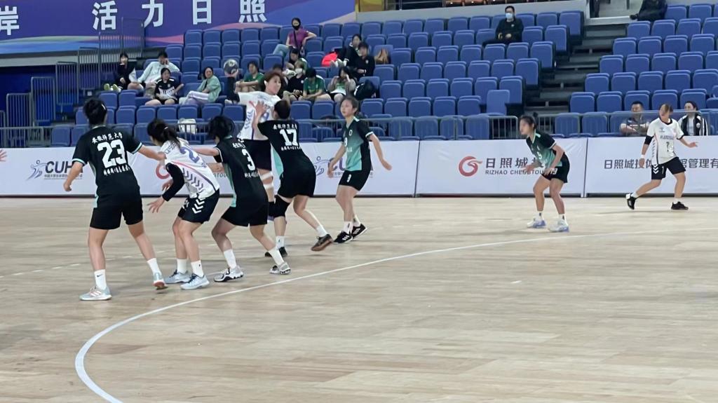 与上届比赛的女子组季军安徽师范大学相遇,面对这样一支来自“手球之乡”且拥有现役手球队员的队伍,手球队的姑娘们无惧无畏,奋勇拼争,经过一个小时的激战,以27:18的完美战绩斩获大赛季军,实现了历史性的突破。