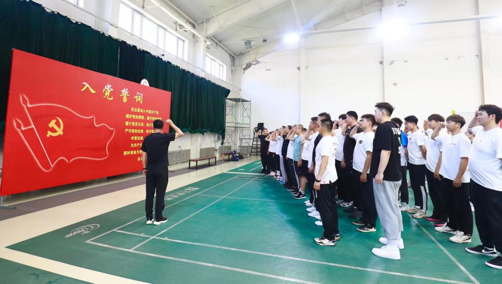 6月29日下午,在中华路校园网球馆内开展的“弘扬新时代体育精神 推动学院高质量发展”主题党日正在进行。党员师生通过气排球、羽毛球等项目的切磋交流,在教与学的互动之中,将师生间的凝聚力进一步提升、将体育的文化魅力进一步传播。活动的最后,由院党委书记张二军带领全体师生党员重温入党誓词,面向党旗庄严宣誓,回首初心、深刻感悟,进一步坚定了为党的事业奋斗终身的决心。