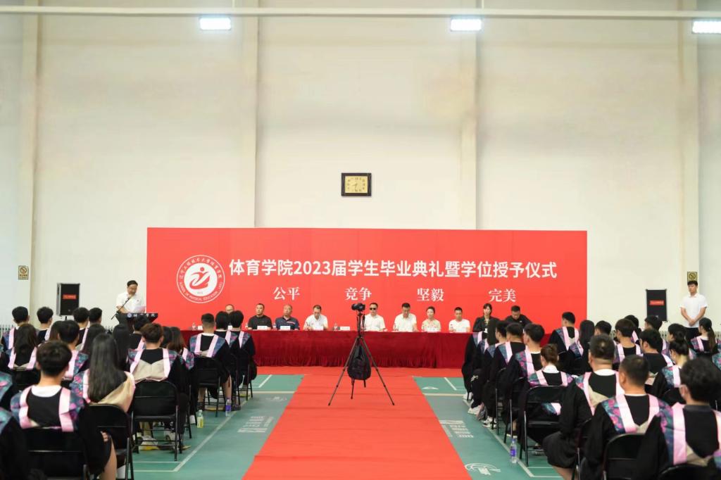 2023届学生毕业典礼暨学位授予仪式在中华路校园网球馆隆重举行。学院领导班子、各科室教研室负责人、毕业班班导师、教师代表参加了典礼。