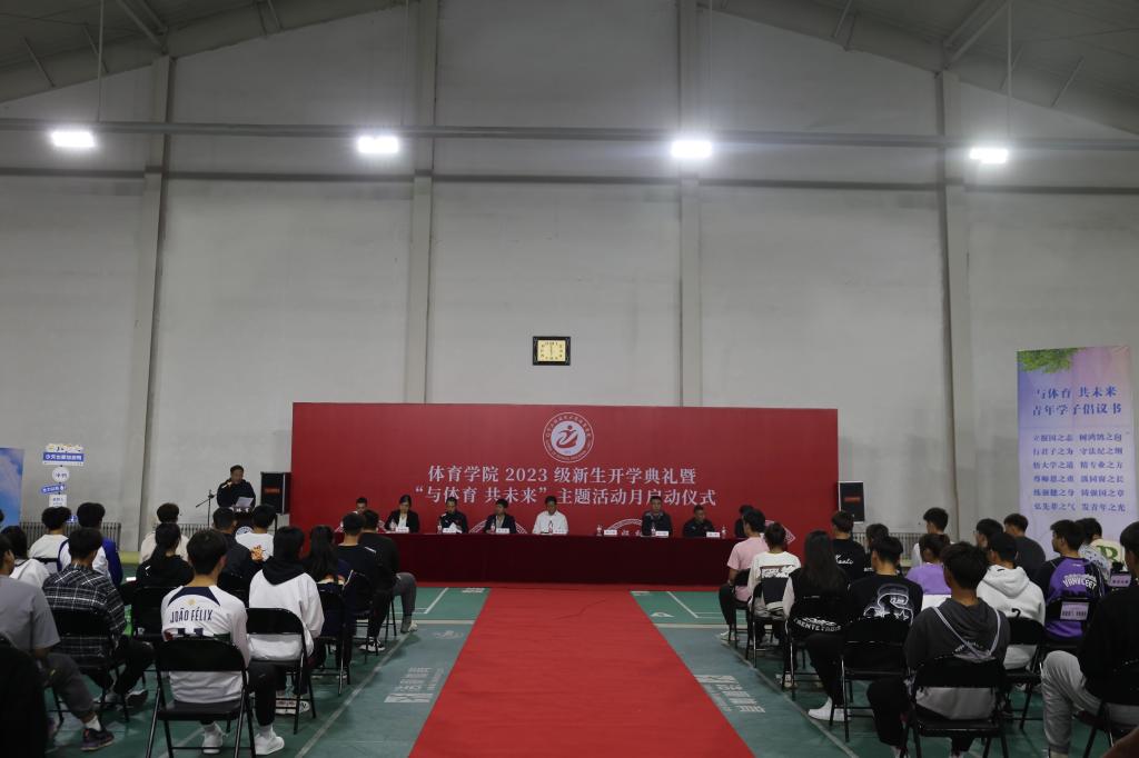在中华路校园网球馆隆重举行2023级新生开学典礼暨“与体育 共未来”主题活动月启动仪式。学院领导班子、各科室教研室负责人、新生班导师出席典礼。学院2023级全体新生参加典礼,典礼由院学生工作部主任张一兵主持。