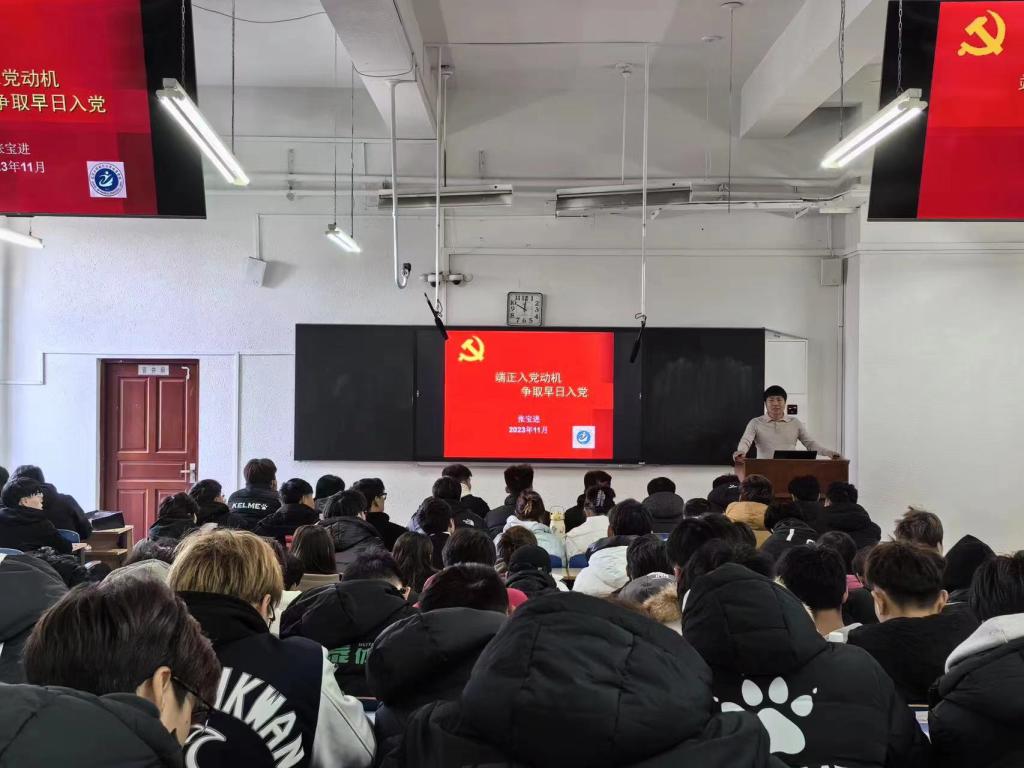 组织员张宝进老师主讲,学院学生入党积极分子及2023级全体学生参加了本次党课的学习。