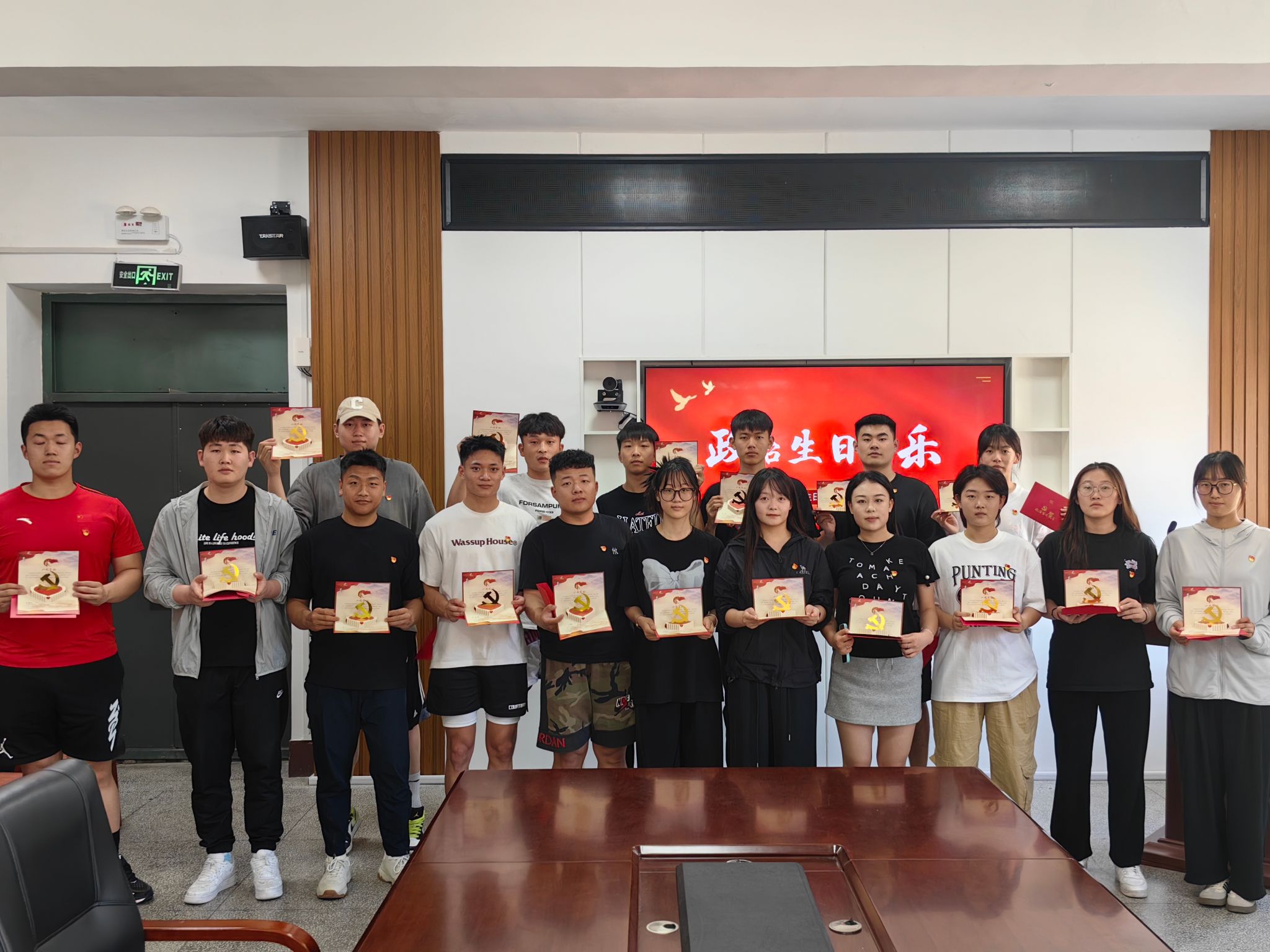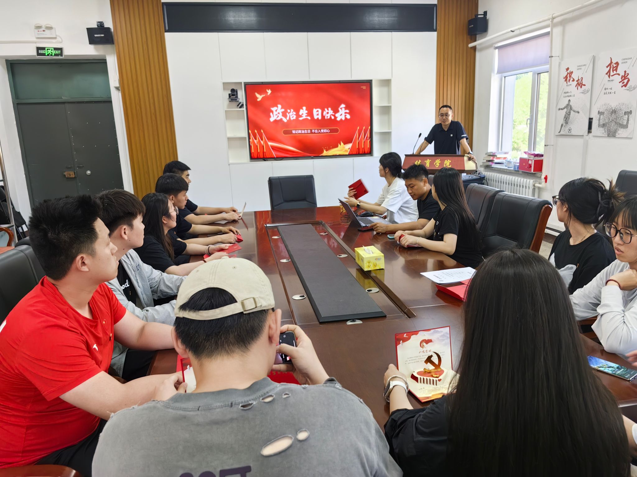 在活动中,党支部书记郑重老师首先寄语毕业生党员要牢记入党日期,铭记政治生日,在未来的学习和工作中发挥党员先锋模范作用;接着为每一位毕业生党员送上了政治生日卡,与大家共同回忆大学入党的初心和难忘的经历;最后为毕业生党员拍摄了集体生日照,定格这美好的瞬间。