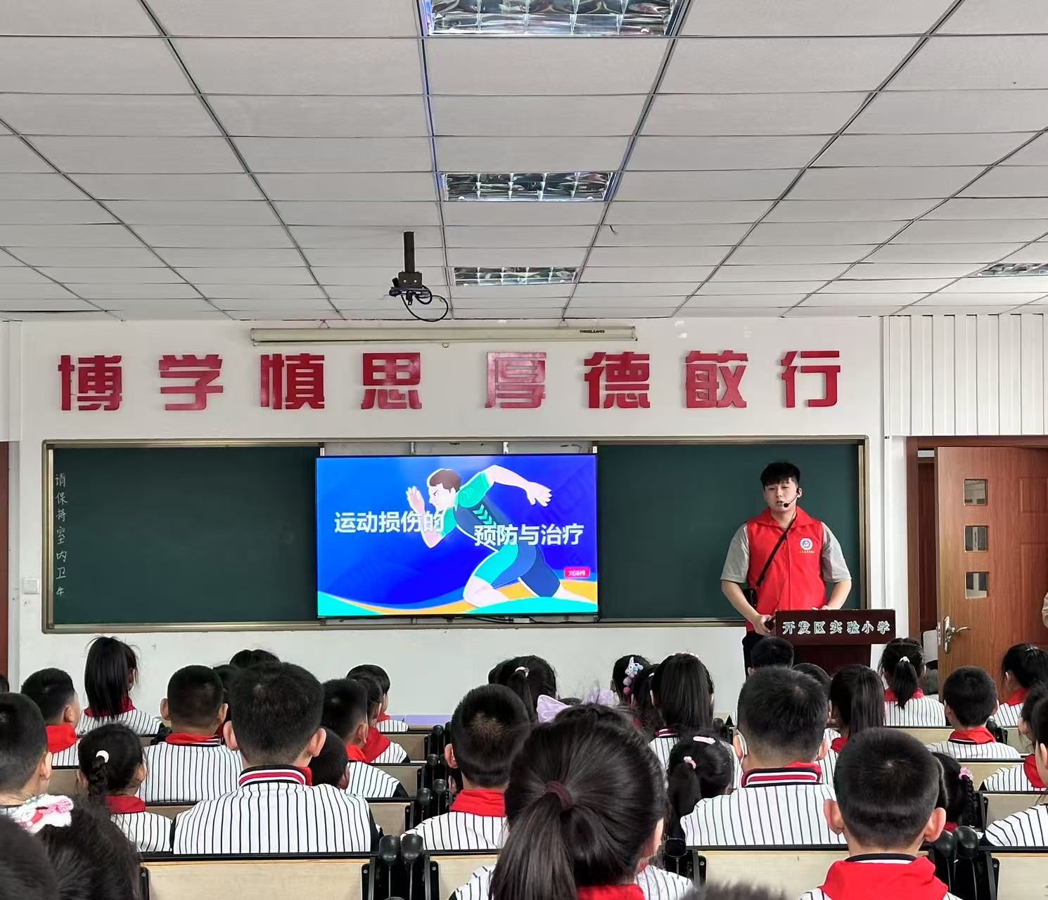 志愿者们深入课堂,用通俗易懂的讲解方式向现场的小学生们普及预防运动损伤的基本知识,传授简单有效的预防方法。在运动场上,志愿者们向小学生们讲解了儿童常见疾病的预防、营养膳食的搭配、个人卫生习惯的培养等知识,让他们对手口卫生、儿童传染病、脊柱健康及近视形成有了更明确的了解。同时,志愿者们还精心策划了宣教内容,确保活动既具有专业性又富有趣味性,能够吸引小学生们的注意力,提高他们的参与度,现场气氛热烈,欢声笑语不断。