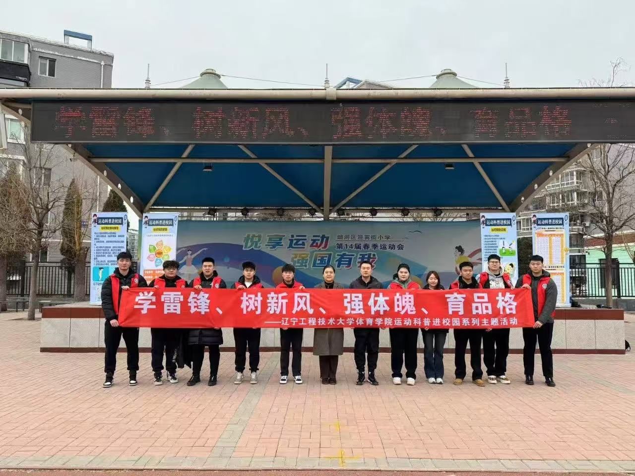 党委副书记李叙瑶、团委书记张一兵带领学院星火志愿服务队走进阜新市迎宾街小学,开展“学雷锋、树新风、强体魄、育品格”运动科普进校园系列活动。