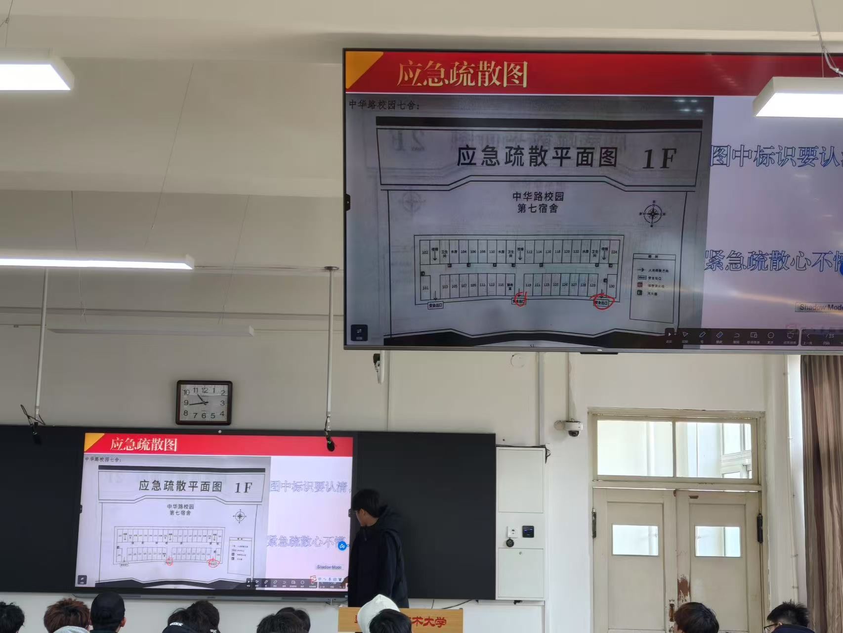 会后组织寝室长在四舍、五舍、六舍、七舍、八舍进行了实地疏散演练,理论联系实际,筑牢安全意识。