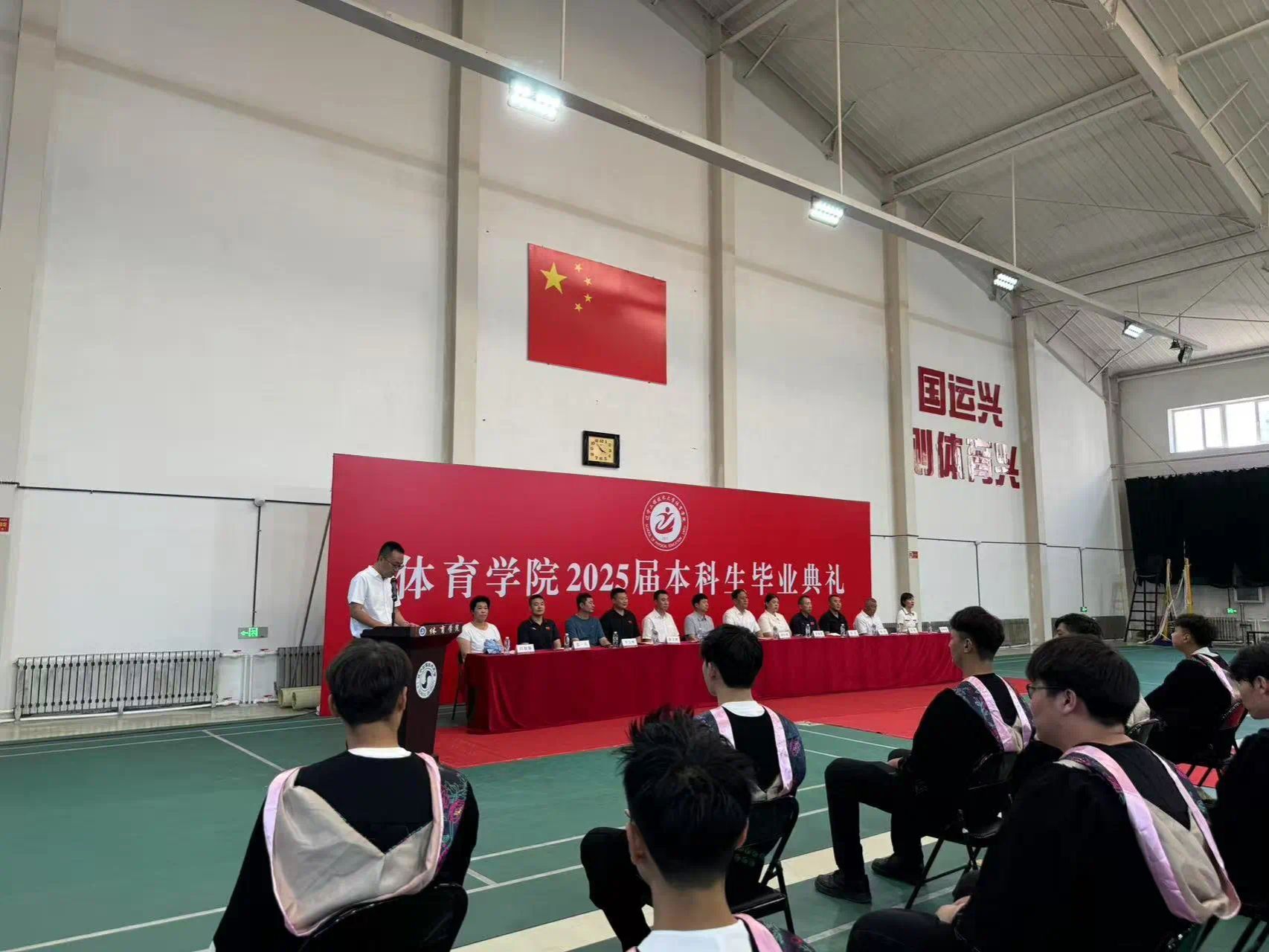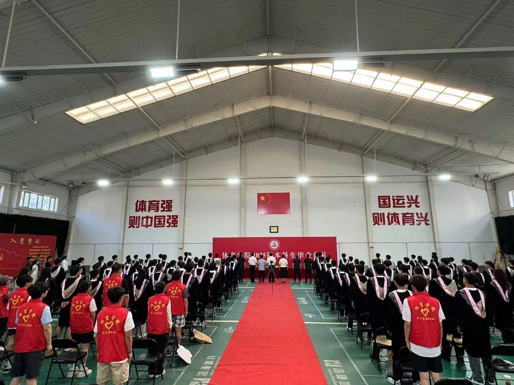 的院训精神,向2025届毕业生提出四点希望。一是以情怀为桨,始终牢记“体育兴则中国兴”的使命担当,弘扬“公平”准则;二是以勇气为帆,面对未来未知的挑战,秉承“竞争”精神;三是以健康为舟,把运动习惯融入生活日常,践行院训中“坚毅”的品格;四是以热爱为舵,无论未来投身专业领域,还是开启全新赛道,都能追求“完美”,永葆赤子之心。