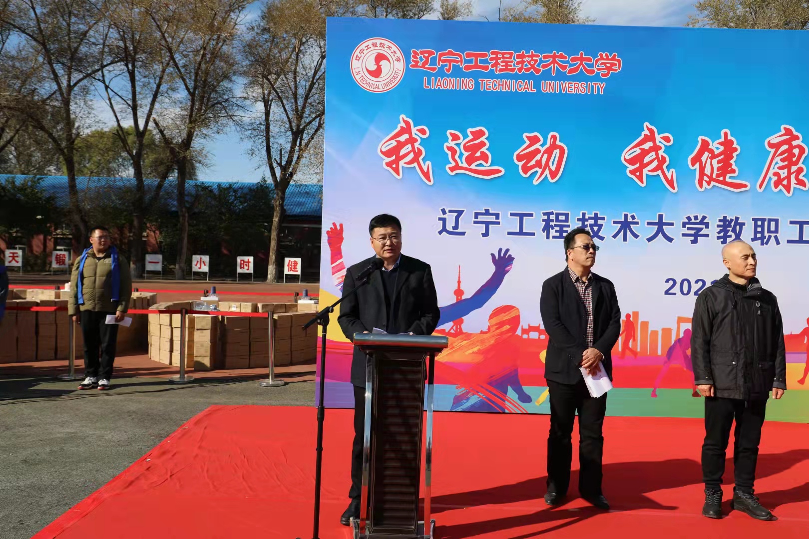 为切实增强教职员工体质,促进和谐校园建设,根据学校年度工作安排,校工会以“我运动·我健康·我快乐”为主题,组织举办了2021年教职工趣味运动会。10月20日下午,阜新校区2021年度教职工趣味运动会圆满结束。副校长马修泉出席开幕式并致辞。副校长周志强、岑松,纪委书记于海臣,党委委员、党委统战部(教师工作部)部长叶玉清,总会计师李振林出席开幕式,认真检阅了阜新校区工会分会代表队。开幕式由校工会常务副主席韩玉伟主持。